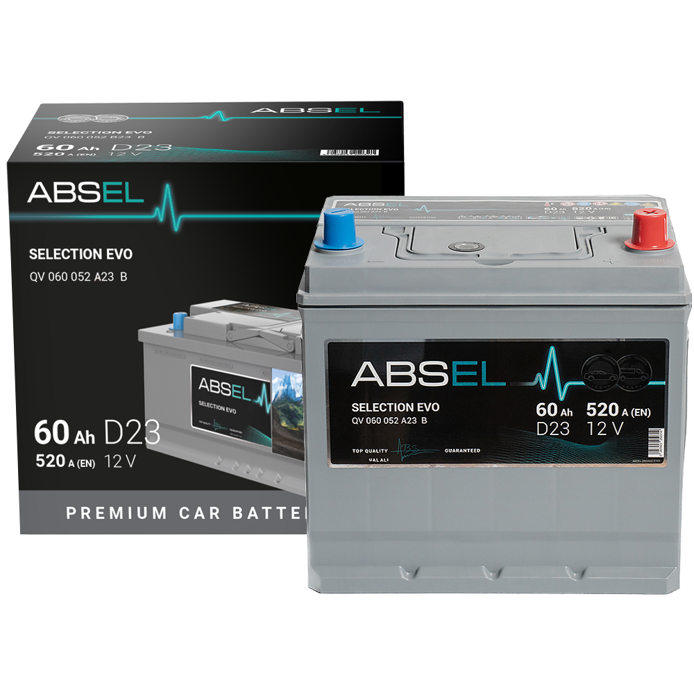 ABSEL SELECTION EVO batteries, powered by advanced SLI technology, deliver maximum starting current for fast, effortless engine ignition, exceptional cold-weather performance, and reliable power to meet all driving demands.