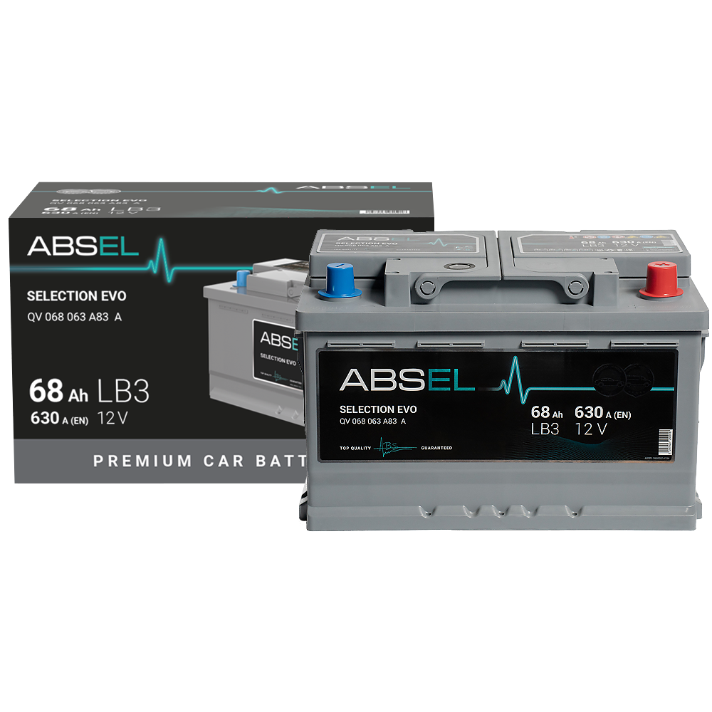 ABSEL SELECTION EVO batteries, powered by advanced SLI technology, deliver maximum starting current for fast, effortless engine ignition, exceptional cold-weather performance, and reliable power to meet all driving demands.