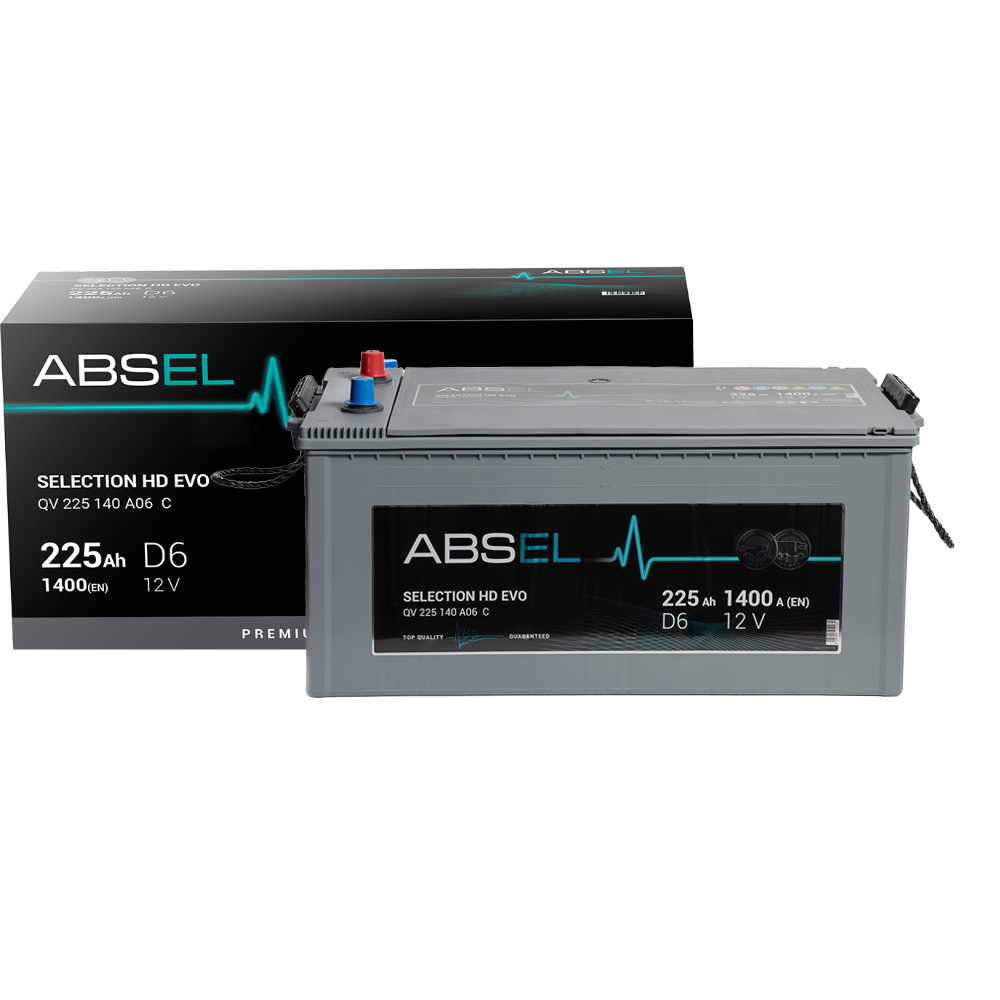 ABSEL SELECTION HD EVO, powered by advanced SLI technology, delivers maximum starting current for fast and reliable engine ignition, exceptional cold-weather performance, and 25% higher efficiency than standard batteries.